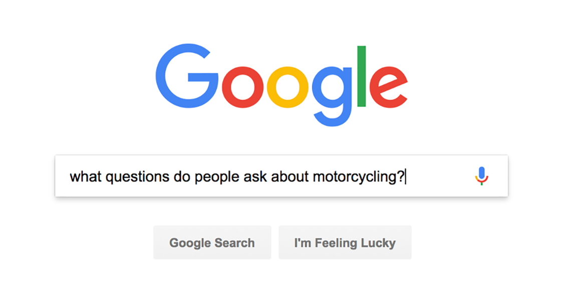 Using a keyword research tool, it is possible to extract details of past Google searches. In this case, I wanted to produce a list of every search worldwide containing a question word (who, how, what, why, when) combined with any of the words ‘motorcycle’, ‘motorbike’, etc.